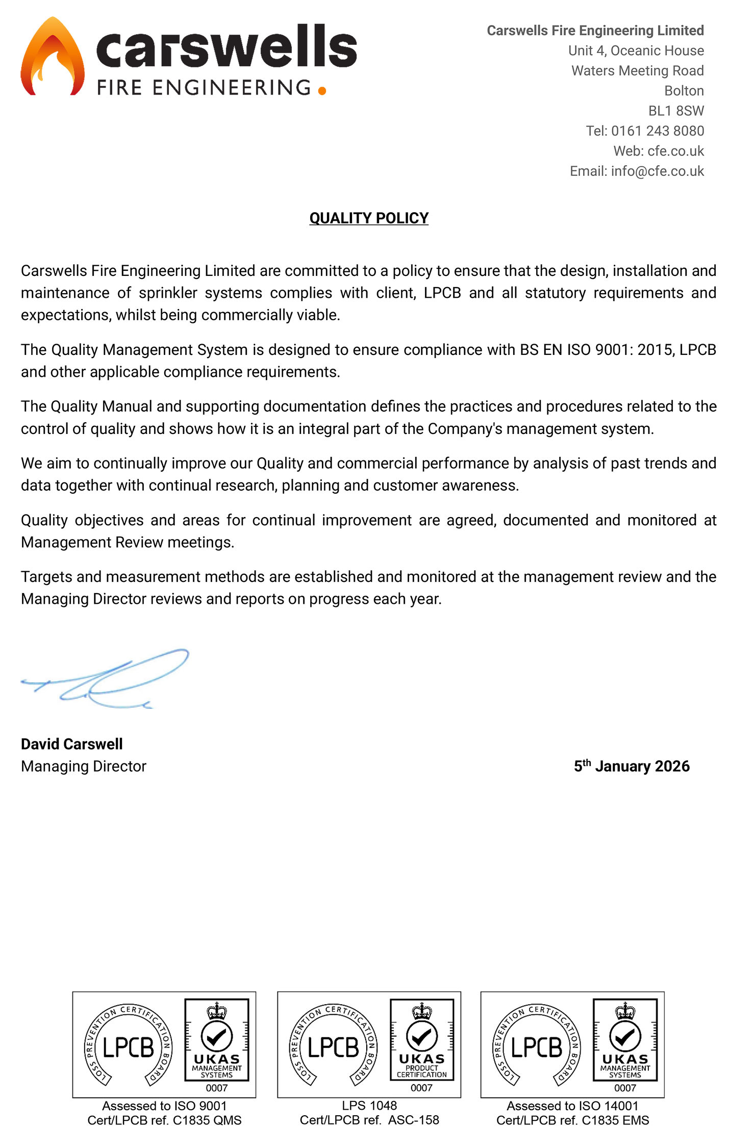 “Carswells Fire Engineering have impressed from Day 1. Their knowledge and response time is very impressive.”